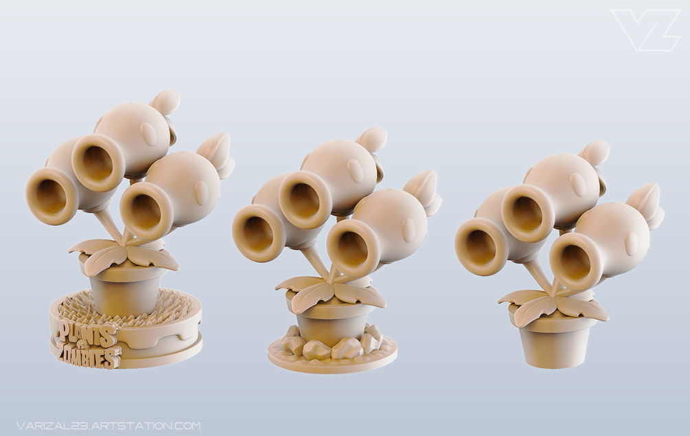 High Quality Threepeater 3D Printable Model, inspired by and based on the famous game: Plants vs Zombies