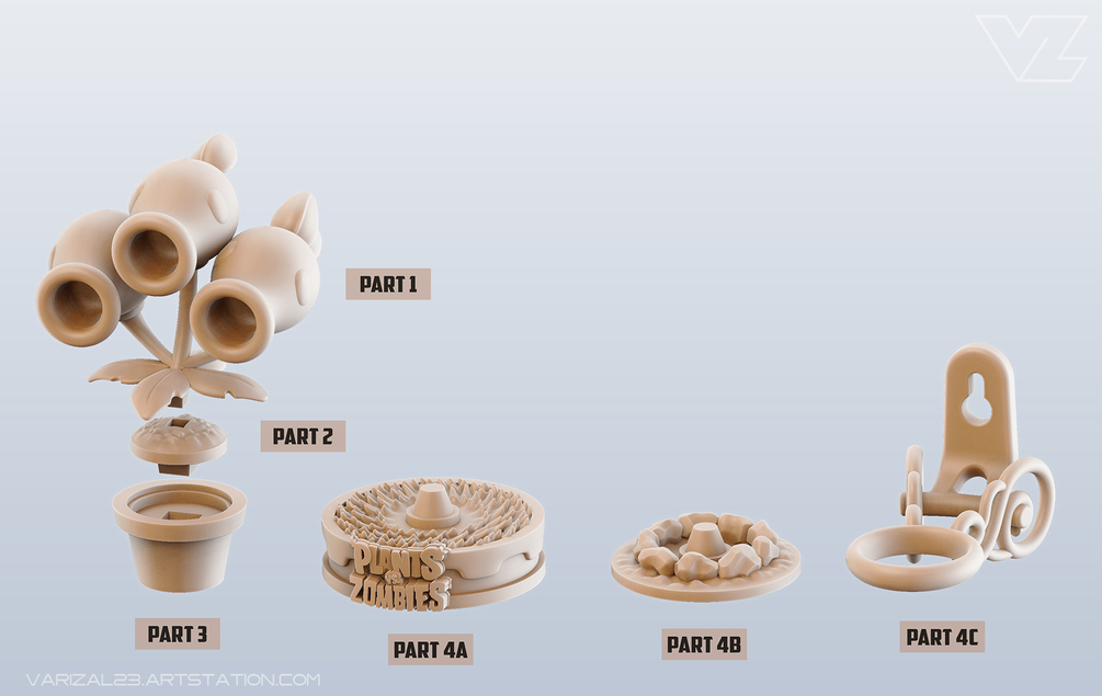 High Quality Threepeater 3D Printable Model, inspired by and based on the famous game: Plants vs Zombies