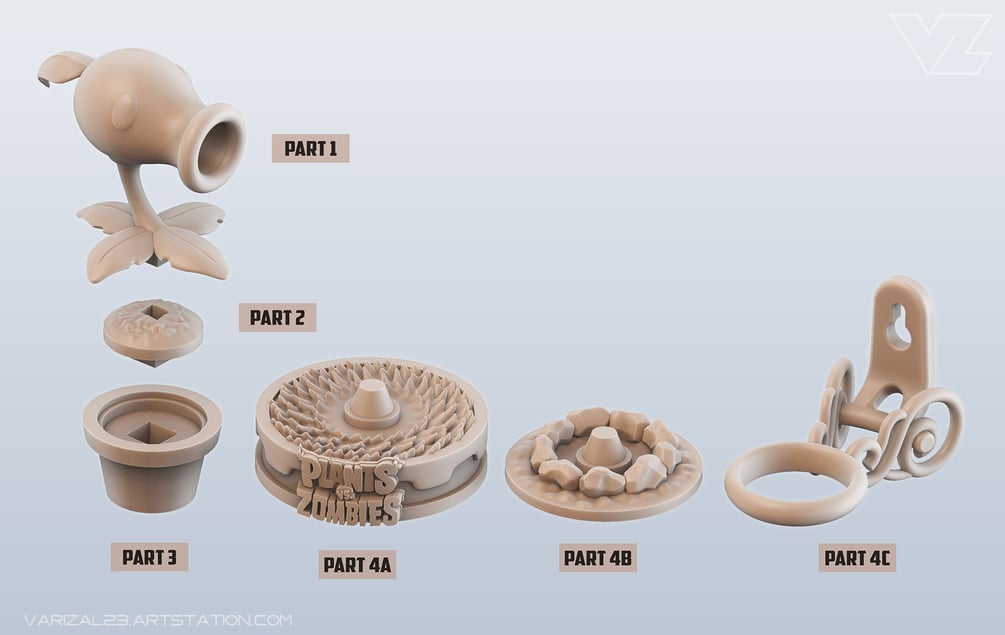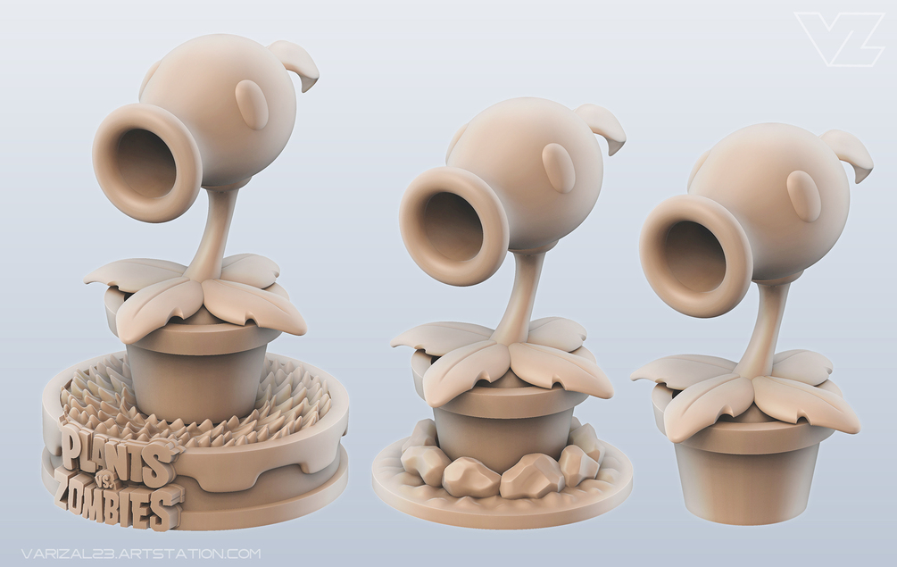 High Quality Peashoter 3D Printable Model, inspired by and based on the famous game: Plants vs Zombies