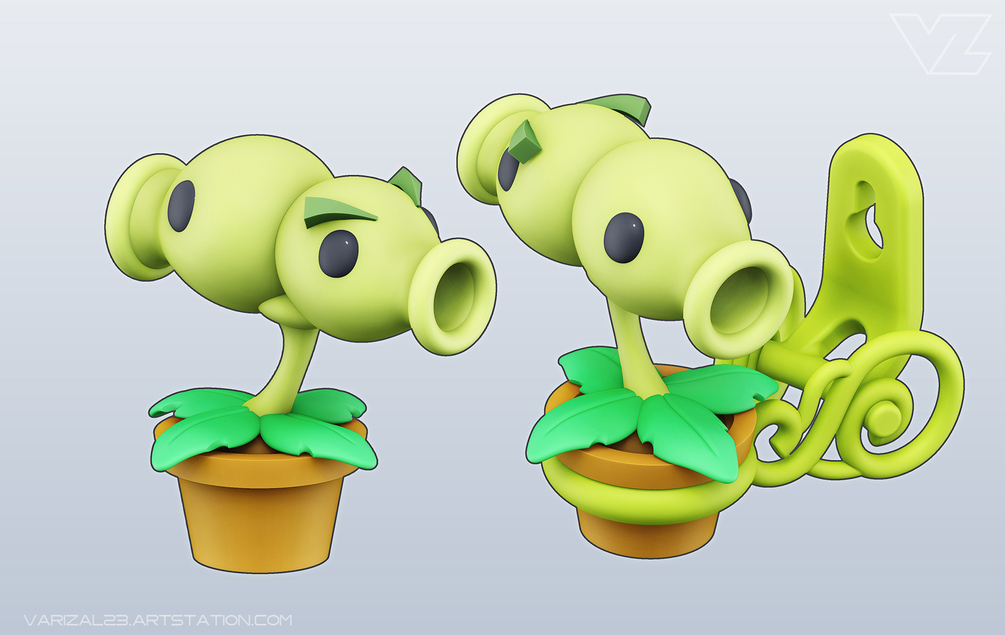High Quality Split Pea 3D Printable Model, inspired by and based on the famous game: Plants vs Zombies