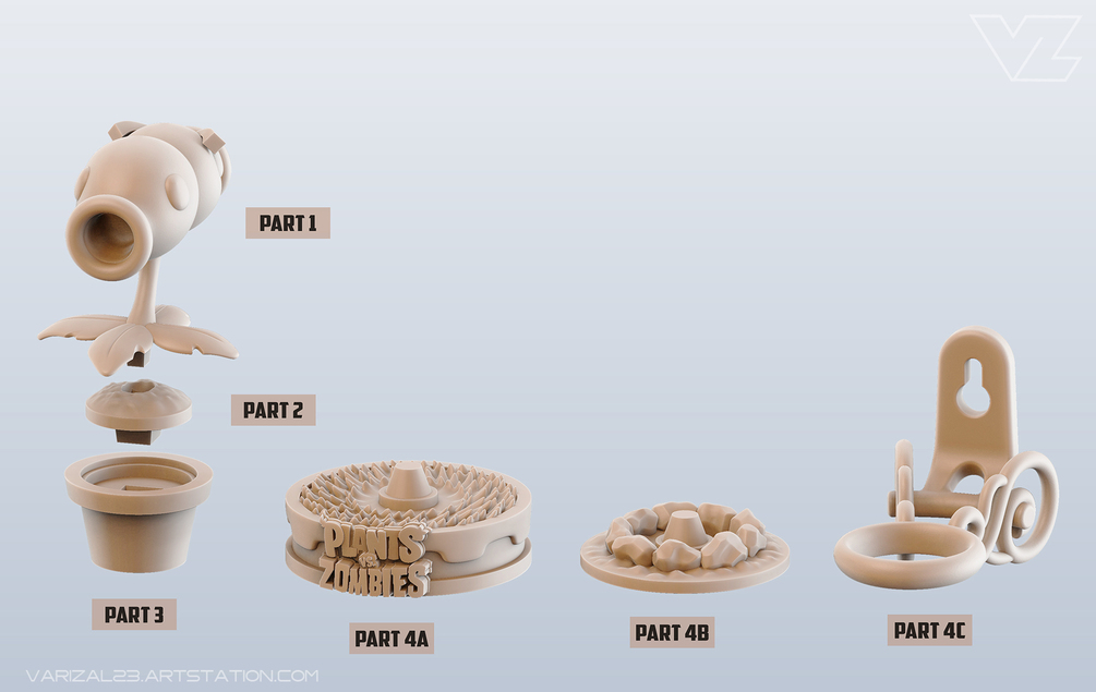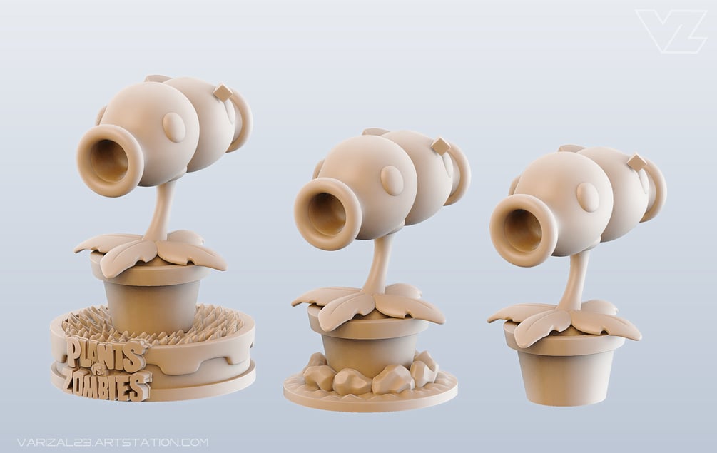 High Quality Split Pea 3D Printable Model, inspired by and based on the famous game: Plants vs Zombies